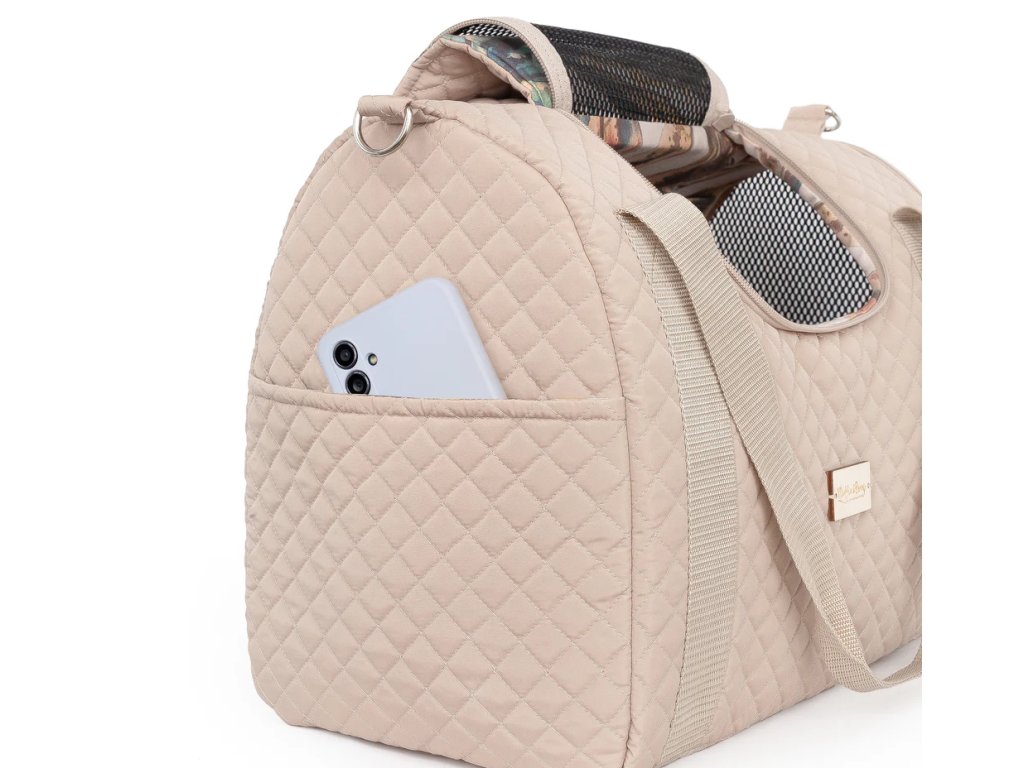Dopřejte luxusní cestování nejen sobě, ale i vašemu mazlíčkovi. Vytvořili jsme cestovní tašku pro psy a kočky cestovní tašku, která je určeno i těm nejmenším. Tvar cestovní tašky připomíná malý "domeček", která je uvnitř velmi měkký a útulný, a malí pejsci se v něm rádi zachumlají, odpočívají a užívají si výlet! Pro vnější stranu tašky jsme zvolili prošívanou látku, která je velmi praktická a snadno se čistí. Aby byl náš pelíšek měkký a útulný i zevnitř, zvolili jsme podšívku ze 100% bavlny, která je velmi hladká, prodyšná a zároveň odolná.