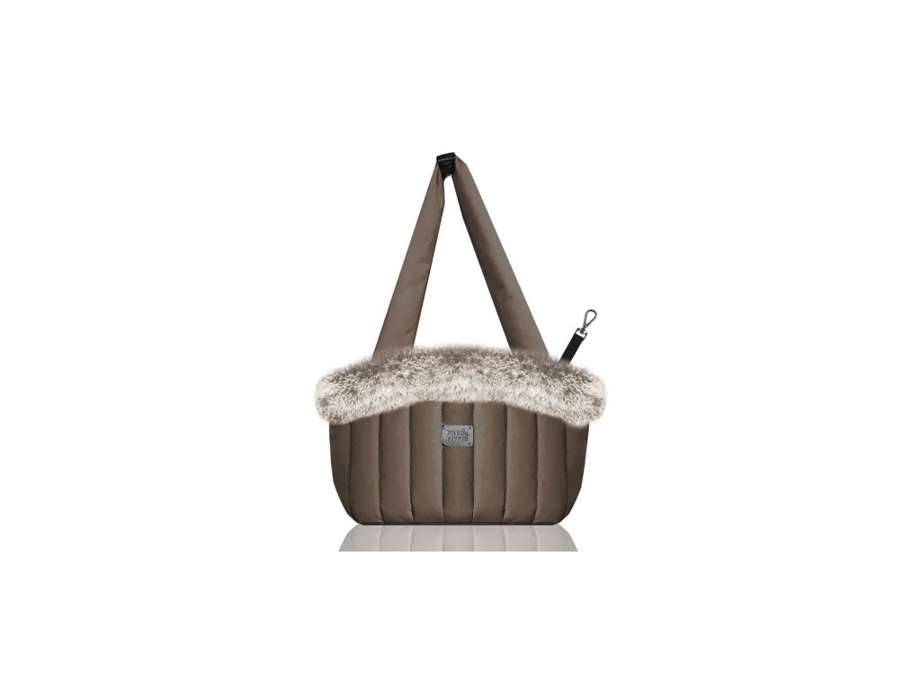 Prošívaná pohodlná béžová nylonová taška s titanovou povrchovou úpravou pro malé psy. Otvory na obou stranách pro nošení na pravé nebo levé straně. Taška je vybavena vyjímatelný polštářem z šedé husté a měkké mikro kožešiny. V tašce pro psy naleznete vnitřní kapsu pro uschování dokladů nebo pamlsků pro pejska. Má odnímatelný ramenní popruh z růžového nylonu s titanovými karabinami. Taška je pošitá mikro kožešinou a je zdobena malým titanovým kovovým štítkem "Milk&Pepper". Pejska uchytíte pomocí vnitřního vodítka z EKO kůže a titanové kovové karabiny. Velmi snadno se udržuje a je vhodná na každodenní použití.