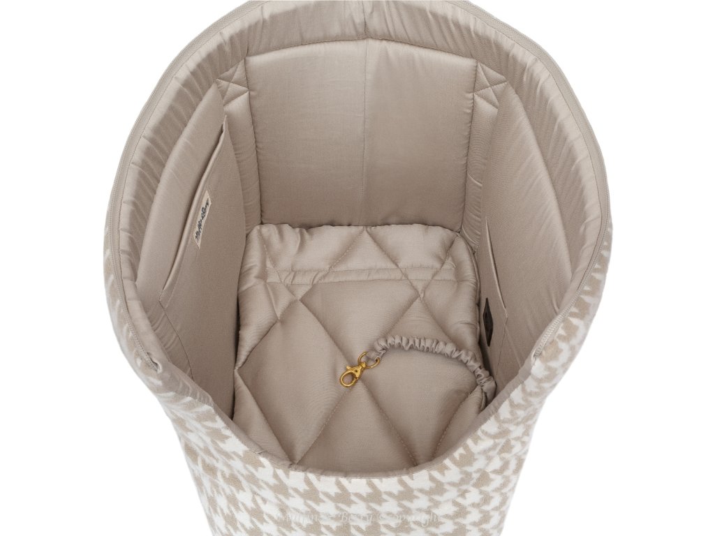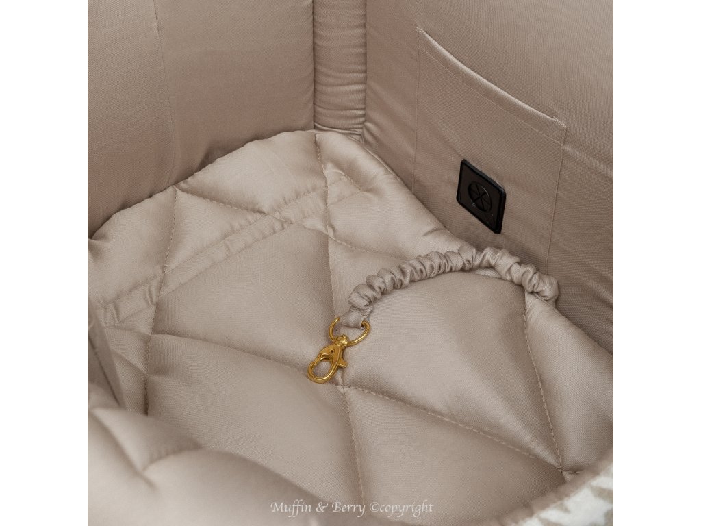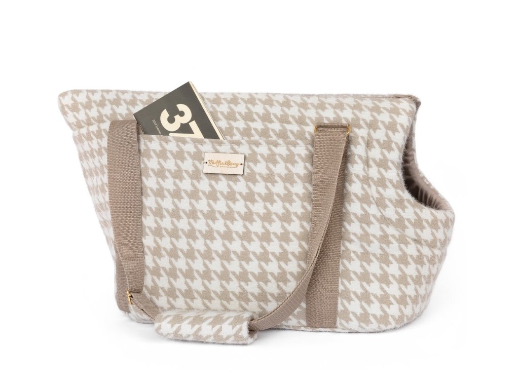 Cestovní taška Aurelia je ručně vyrobený a nepostradatelný doplněk, který Vám a Vašemu mazlíčkovi pomůže užít si den venku nebo při cestování. Cestovní taška je vyrobená z tvídového materiálu s výrazným velkým vzorem je navržena pro každodenní pohodlí a eleganci. Je měkká, bezpečná a promyšleně konstruovaná, takže je ideální pro městský život, kavárny, veřejnou dopravu a každodenní výlety – kombinuje nadčasový design s praktickou funkčností. Aby byla taška pro psy zevnitř měkká a útulná, byla zvolena podšívka ze 100% bavlna, která je velmi hladká, prodyšná a zároveň odolná. Díky tvaru a měkkosti je taška pro psa velmi příjemná, aby se v něm mohl zachumlat, odpočívat a užívat si výlet!