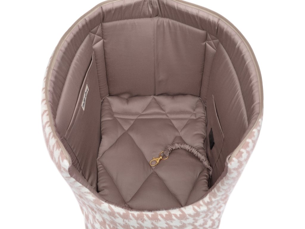 Cestovní taška Daphne je ručně vyrobený a nepostradatelný doplněk, který Vám a Vašemu mazlíčkovi pomůže užít si den venku nebo při cestování. Cestovní taška je vyrobená z tvídového materiálu s výrazným velkým vzorem je navržena pro každodenní pohodlí a eleganci. Je měkká, bezpečná a promyšleně konstruovaná, takže je ideální pro městský život, kavárny, veřejnou dopravu a každodenní výlety – kombinuje nadčasový design s praktickou funkčností. Aby byla taška pro psy zevnitř měkká a útulná, byla zvolena podšívka ze 100% bavlna, která je velmi hladká, prodyšná a zároveň odolná. Díky tvaru a měkkosti je taška pro psa velmi příjemná, aby se v něm mohl zachumlat, odpočívat a užívat si výlet!