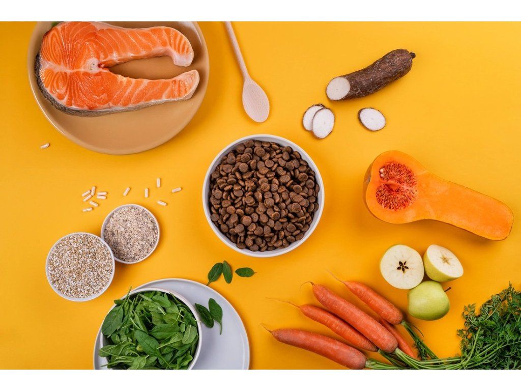 čerstvý losos (50 %), sušený losos (19 %), hrách (11 %), vepřový tuk (6 %), přírodní aroma (vývar z jater) (3 %), dýně (2 %), sušená jablečná dužina (2 %), lososový olej (2 %), lněné semínko (2 %), sušené vaječné skořápky (1 %), hrachová mouka, sušený špenát (0,5 %), mrkev (0,5 %), sušený srdečník (0,1 %), glukosamin (0,03 %), frukto-oligosacharidy (0,022 %), chondroitin sulfát (0,02 %), mannan-oligosacharidy (0,018 %), Mojave yucca (0,012 %), semena ostropestřce mariánského (0,009 %), probiotika Lactobacillus helveticus HA – 122 inaktivováno (15x10⁹ buněk/kg)