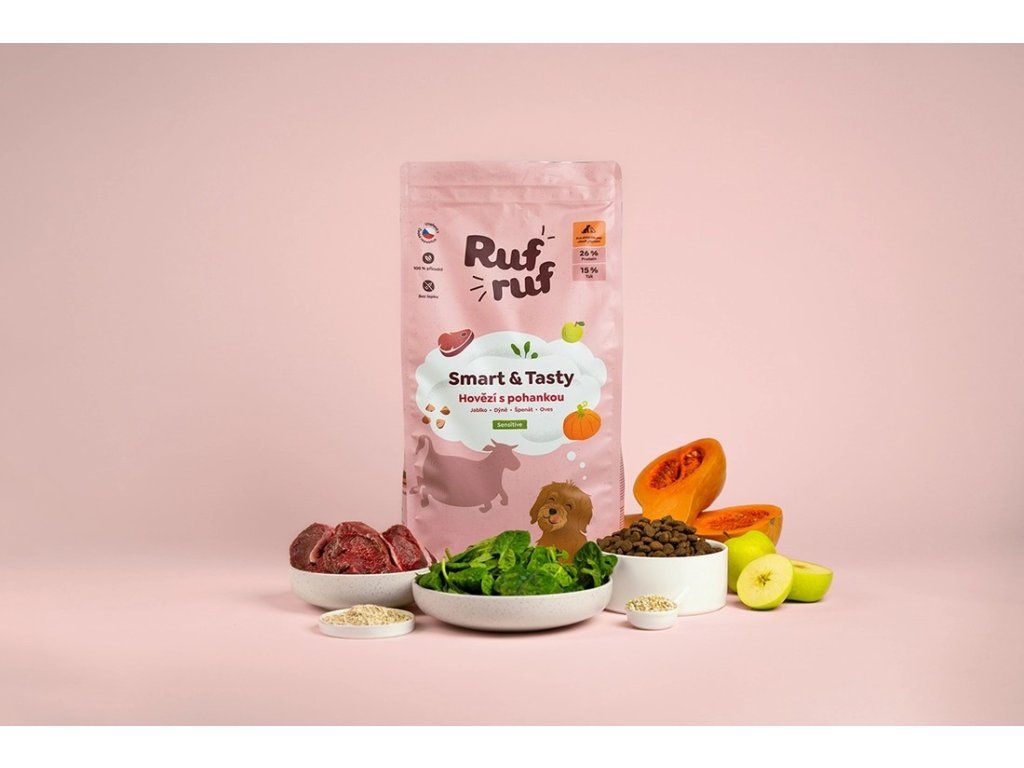 Granule pro psy Rufruf Smart & Tasty s hovězím masem a pohankou, které jsou speciálně navrženy pro dospělé psy všech plemen milující poctivou chuť masa. Tyto granule pro psy obsahují 55 % kvalitního hovězího z volných pastvin, které doplňuje 17 % bezlepkové pohanky a ovesných vloček pro stabilní energii a zdravé trávení bez zbytečného zatěžování organismu.
