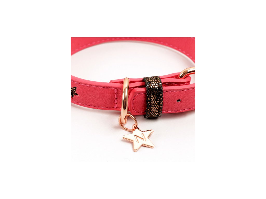 Exkluzivní obojek Milkandpepper pro psy v růžovém provedení. Dopřejte pejskovi osobitý styl. Zpracování a použití kvalitní materiálů řadíme obojky Milk&Pepper do té nejvyšší třídy. EKO kůže je velmi měkká a nošení obojku je tak pro pejska velmi pohodlné. Kování obojku je zlaté. Obojek je doplněn originálním přívěškem hvězdy s logem M&P.