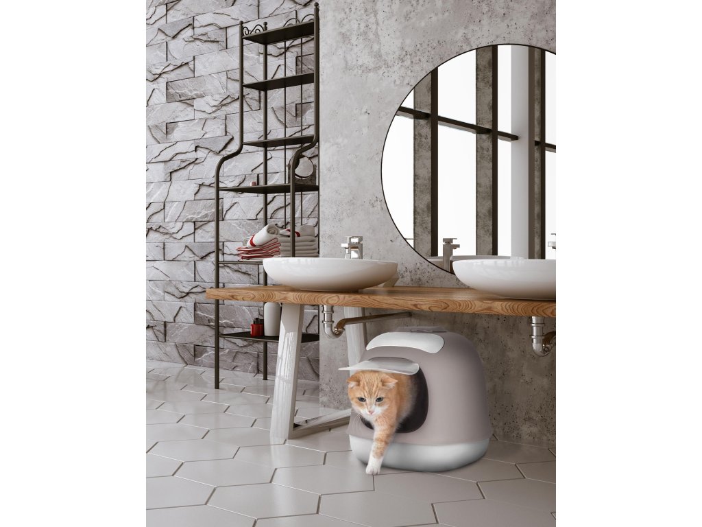 Minú toaleta pro kočky šedá/bílá