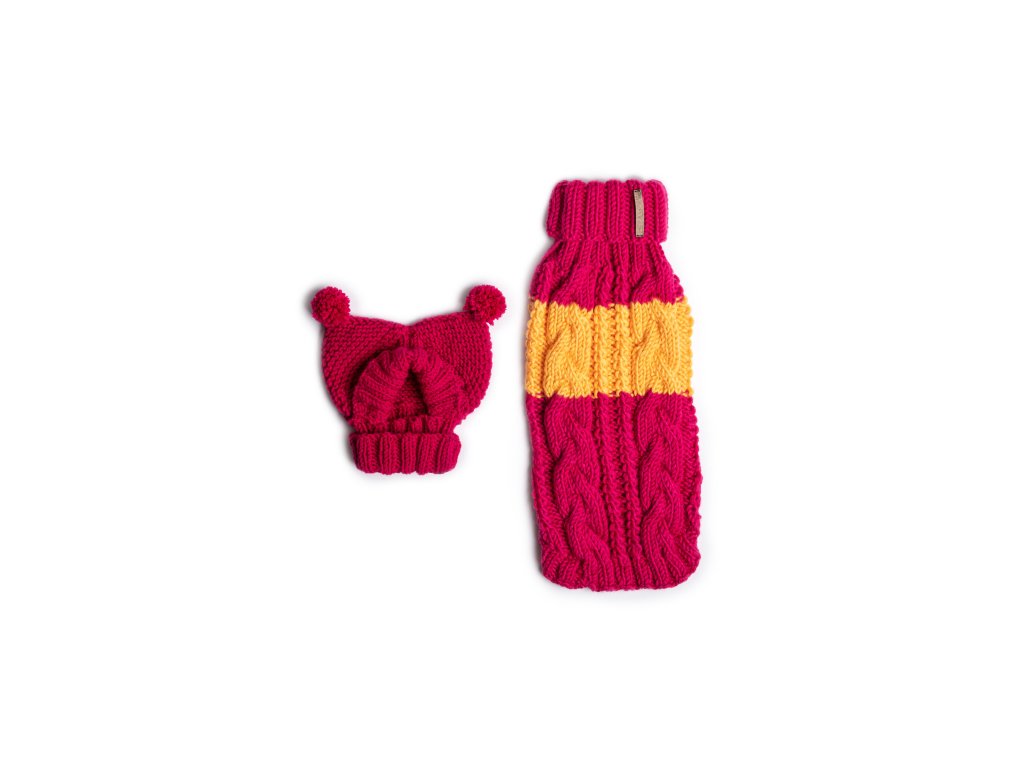 Tento luxusní svetr ručně pletený speciálně pro fenkya kočky. Dekorován koženým logem na roláku.