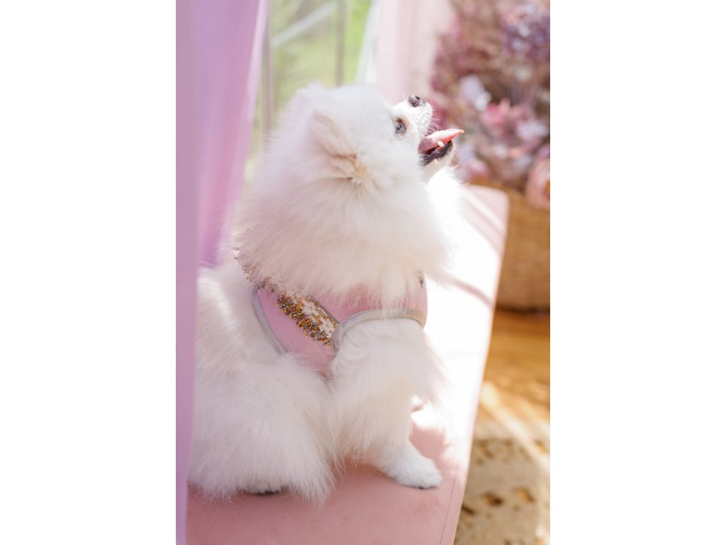 Elegantní postroj pro psy v boho stylu Aurora Pink vyrobený z kvalitních materiálů spojují luxusní design s dokonalým přizpůsobením tvaru těla psa.