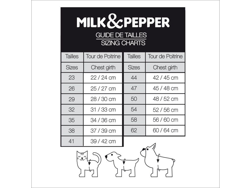 Tento postroj pro psy zdobí luxusní detaily v podobě zlatého kování, pevného zlatého klipu a kovové plaketky Milk & Pepper, které dodávají produktu punc exkluzivity. Praktický postroj pro psy se díky širokému suchému zipu bleskově nasazuje a nylonové lemování v barvě tkaniny zaručuje jeho vysokou odolnost. Pokud hledáte spojení kvality a designu, tento postroj pro psy je navíc velmi snadný na údržbu, neboť jej lze prát v pračce na 30 °C, takže tento oblíbený postroj pro psy bude stále jako nový.