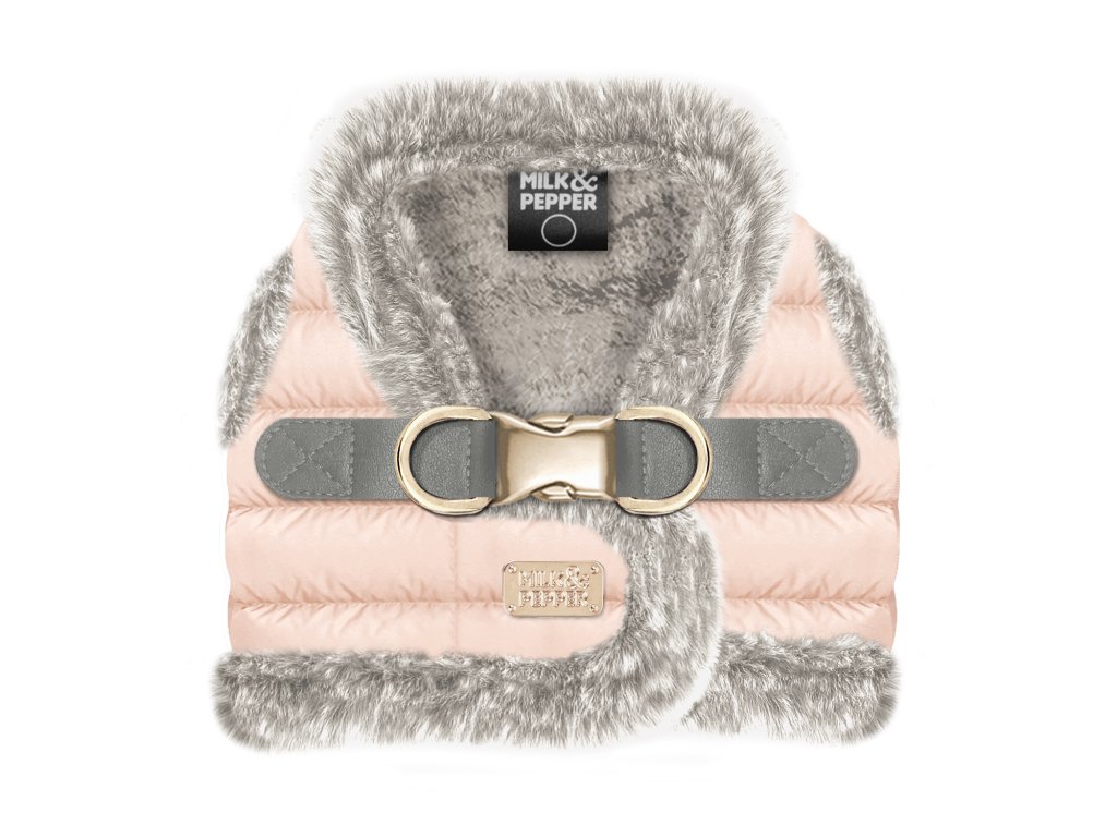 Zateplený postroj pro psy s příjemným hřejivým kožíškem. Postroj má zapínání sponu z titanu a hlavní zapínání na suchý zip. Postroj je z lehkých materiálů, pejsek ani neucítí, že ho má na sobě. Kování v barvě stříbrné. Díky zapínání na suchý zip lze snadno upravit velikost postroje. Postroj pro psy, který je udrží v teple po celou zimu.