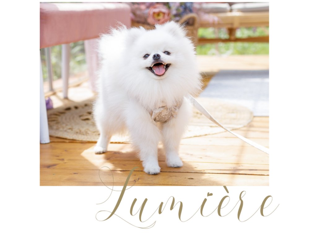 Promyšlené detaily se zlatými akcenty, jemná mašle a barevná kombinace béžové a bíle podtrhují jedinečný styl Vašeho mazlíčka.