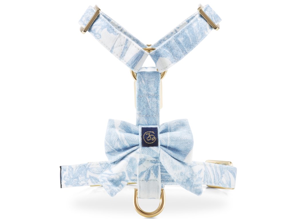 Promyšlené detaily se zlatými akcenty, jemná mašle a barevná kombica světle modré a bíle podtrhují jedinečný styl Vašeho mazlíčka.
