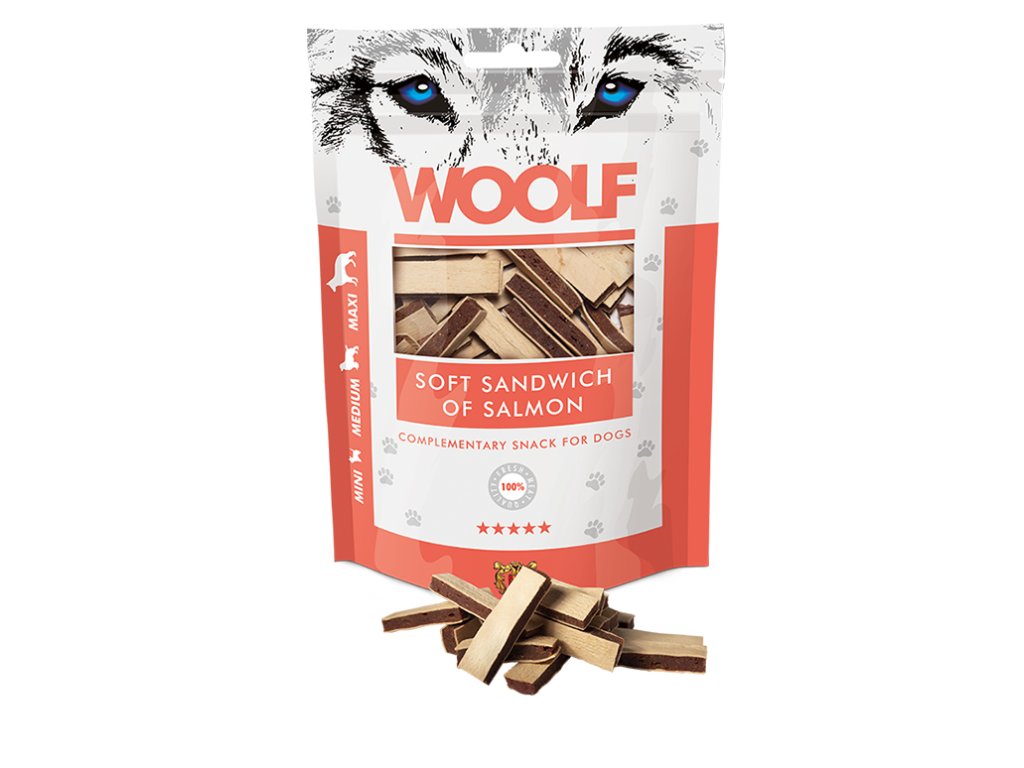 Přírodní měkký masový pamlsek Woolf z lososa s treskou je vhodný pro psy každého plemene i věku. Díky kombinaci chutí lososa a tresky je pochoutka u psů velmi žádaná. Díky tvaru malého podlouhlého sendviče nemusíte pamlsek trhat na menší části a v balení je více kusů než u dlouhých sendvičů. Pochoutky Woolfsnacks jsou speciálně navrženy pro psy všech plemen. Při výrobě jsou ze 100% použity bílkoviny té nejvyšší kvality pro co nejlepší příjem potravy. Veškeré pochoutky Woolfsnacks, jakmile se vyrobí, jsou zabaleny bez chemických přísad, konzervačních látek, nebo barviv. K zajištění ochrany je do sáčku umístěn absorbér kyslíku. Balíček je opatřen zipem pro opětovné uzavření. Nekonzumovat okysličovadlo.