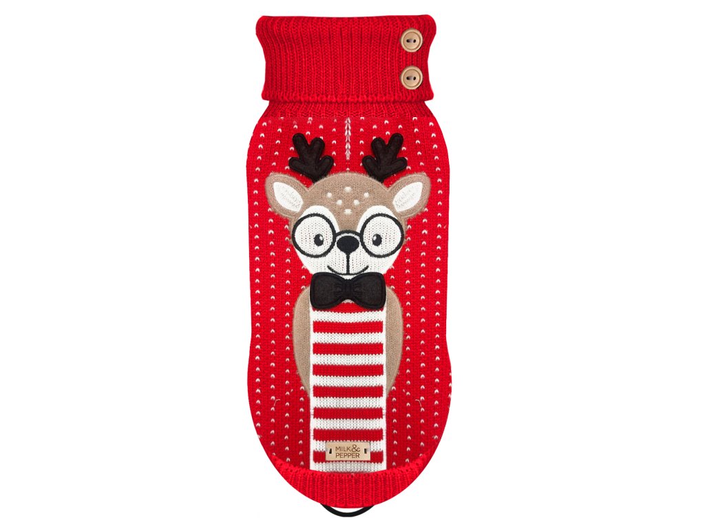 Luxusní červený pletený svetr s vánočním motivem je vhodný především na chladné podzimní a jarní večery, ale i na zimu, a to pro menší a středně velké pejsky. Svetr zaujme především pohodlným střihem a velmi pružným materiálem. Zakrývá celý hřbet a bříško. Psí obleček je opatřen vánočním motivem, takže váš chlupatý mazlíček oslní na každé procházce. V případě ušpinění je možné svetr vyprat v pračce na program vlna při 30°C.