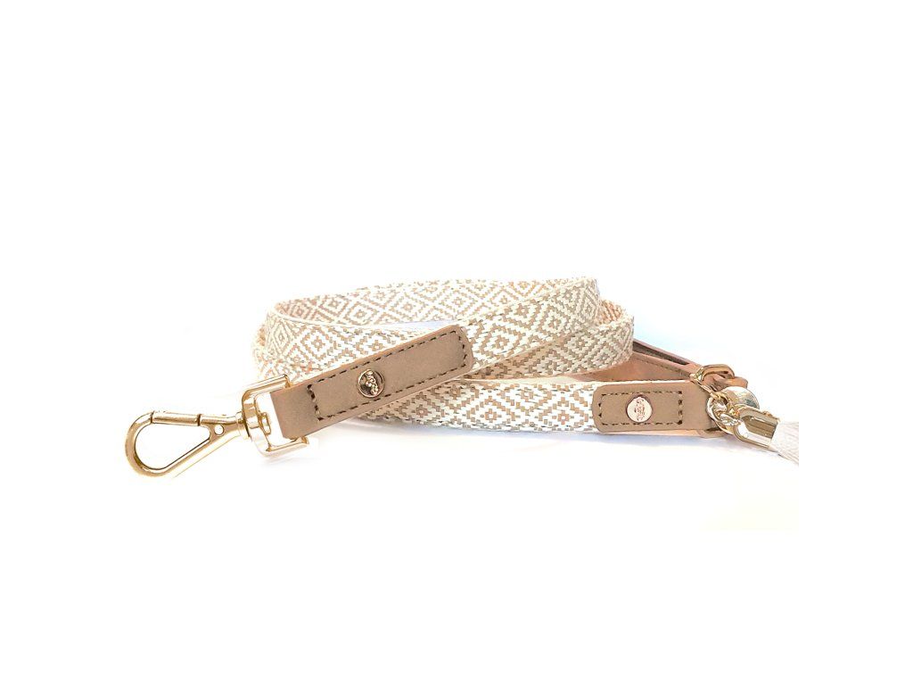 Designové a stylové vodítko Oroko pro psy je dokonalou volbou pro pejskaře, kteří ocení jedinečný styl s nádechem boho elegance do městského prostředí. Toto luxusní vodítko pro psy je vyrobeno z tkaniny ze 100% přírodních celulózových vláken, která je pečlivě tkaná do výrazného béžovobílého geometrického diamantového vzoru, což mu dodává moderní a grafický vzhled, jenž doplňují rafinované detaily z kvalitní umělé kůže v odstínu vintage taupe pro rafinovaný kontrast a pohodlný úchop, takže toto vodítko pro psy skvěle padne do ruky. Vodítko pro psy je osazeno robustním pozlaceným kováním, které zajišťuje maximální bezpečí a eleganci, a navíc je zdobeno gravírovanou zlatou medailí s iniciálami 'M&P'. Vodítko je ideálním a praktickým doplňkem pro každodenní procházky, které dokonale podtrhnou osobitost Vašeho mazlíčka, přičemž díky své odolnosti a preciznímu zpracování zůstává spolehlivým parťákem pro bezpečné a stylové venčení v každé situaci.